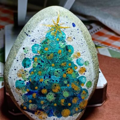 My first Christmas tree. Used dotting too for snowflakes and the lights on the tree.l