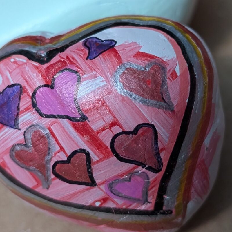 Stitched black heart on purple and pink background
