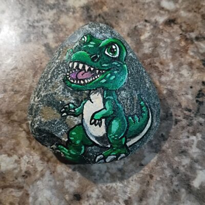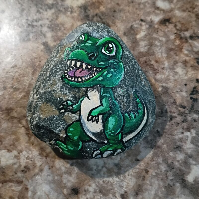So there's a story behind this rock. I asked my hubby if I could send a few rocks to work with him and have a couple of his coworkers hide them during their travels because they are the best! One coworker has a little boy who loved the rocks so I painted a couple just for him!