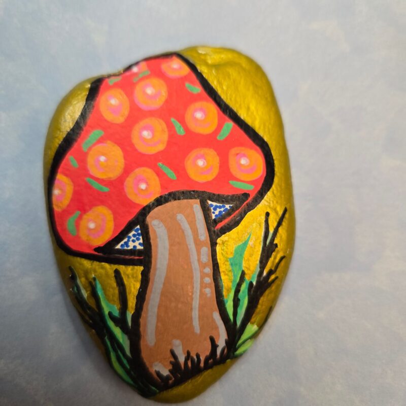 (1st rock done with Artecho paint pens) I love painting mushrooms! If you would like to keep it and maybe rehide it later, just come back to site whenever you're ready!
