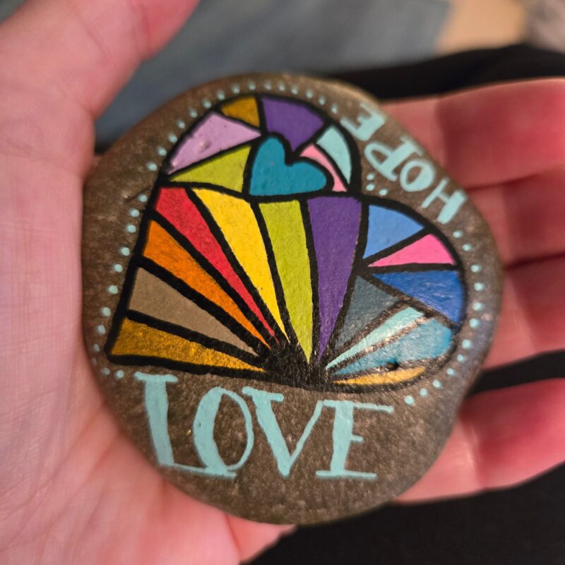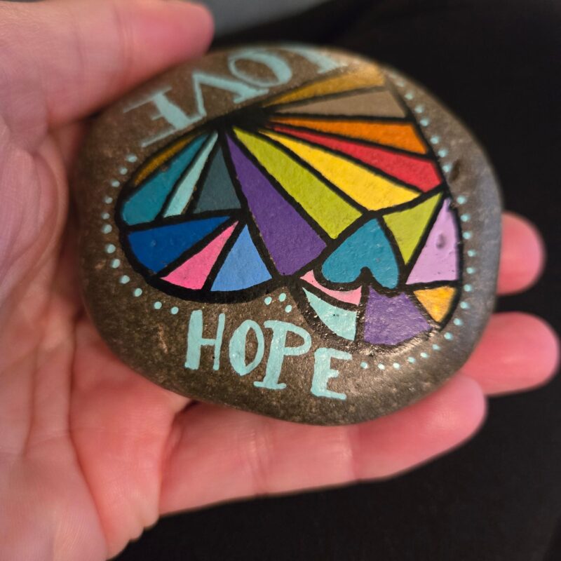 Title says it all. May everyone, especially the finder of this rock, have love & hope in their lives. Please take it. Keep it. Come back to the site and re-hide it…whatever makes you happy. It’s for you.