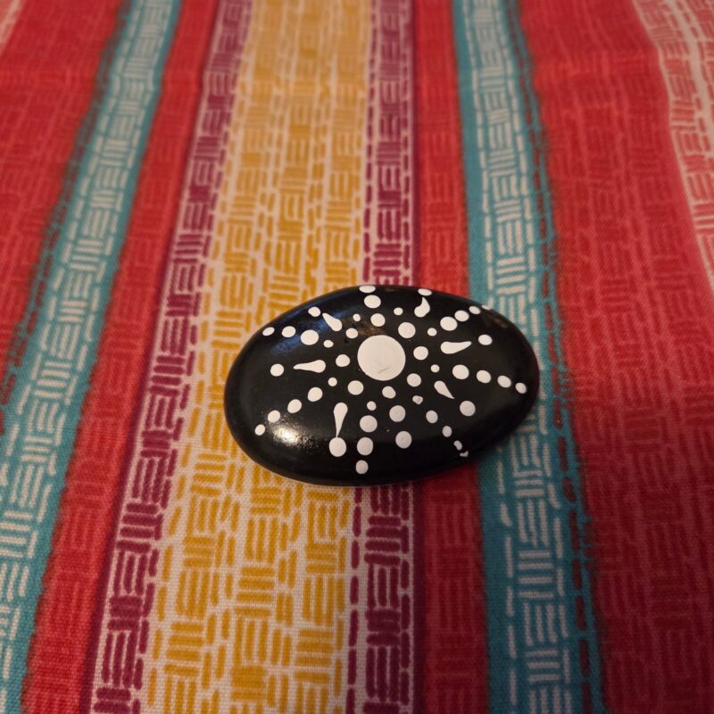 This art style is a form of dot painting, often used to create detailed mandala patterns on surfaces like rocks. The technique, which involves applying small, distinct dots of paint in patterns to form an image, is also known as pointillism.