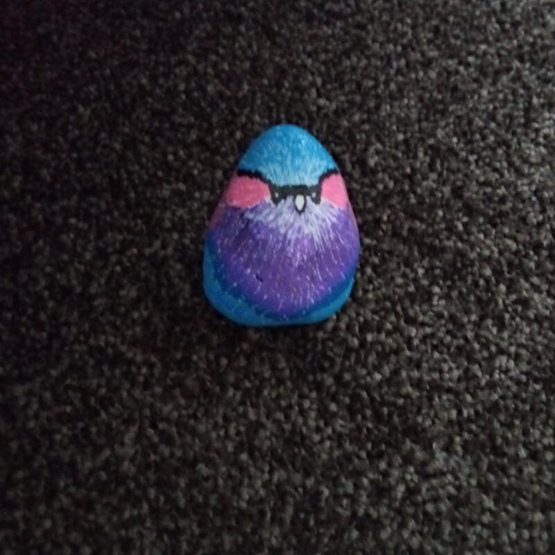 I painted a small stone to look like the African Lilac-breasted roller bird.