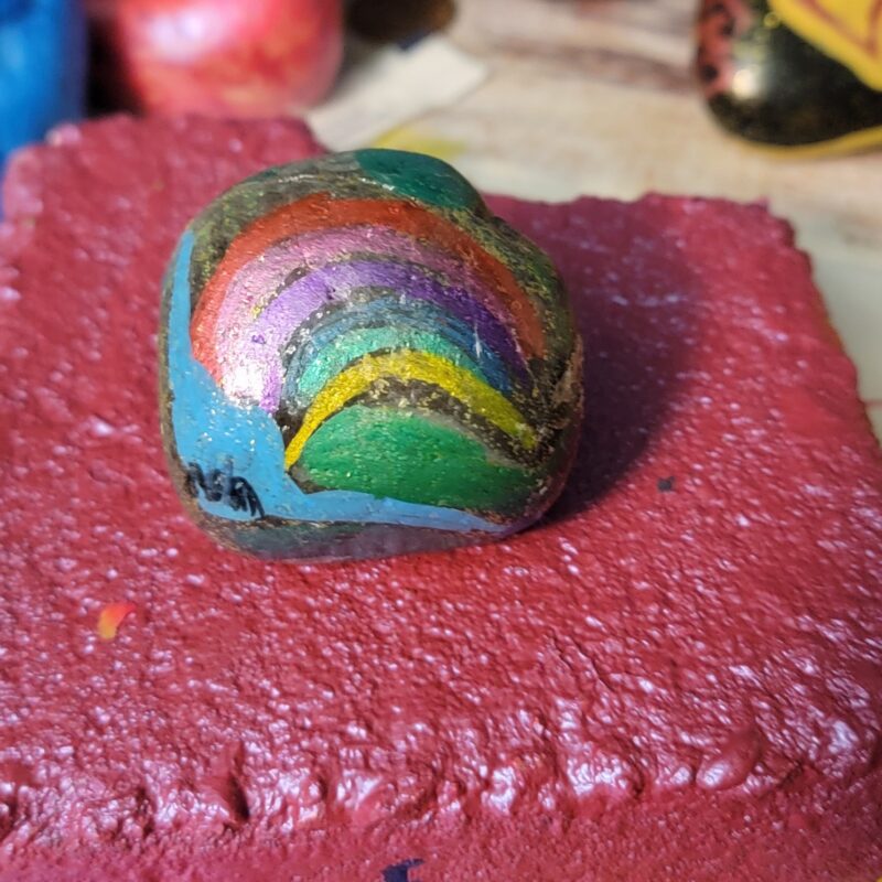 A sparkly rainbow and falls appears on a sparkly rock.